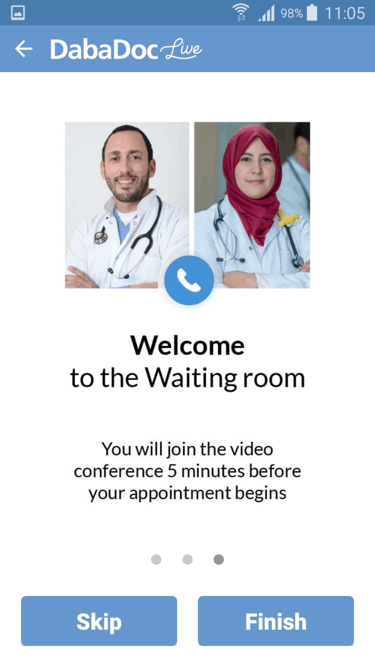 DabaDoc - развивающийся стартап из Северной Африки. Позволяет жителям Марокко, Алжира и Туниса записываться на прием к врачу онлайн. Теперь, используя разработанное нами приложение DabaDoc Live, врачи этих регионов смогут проводить прием в режиме видеоконференции.