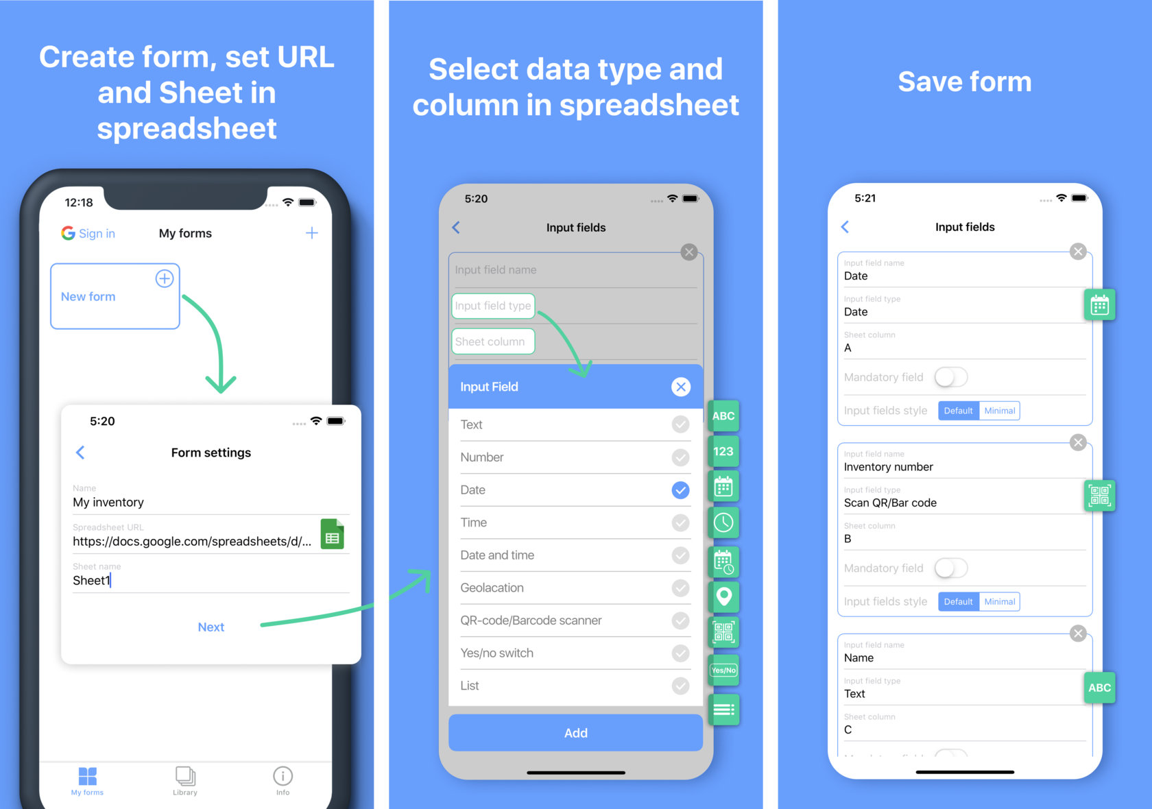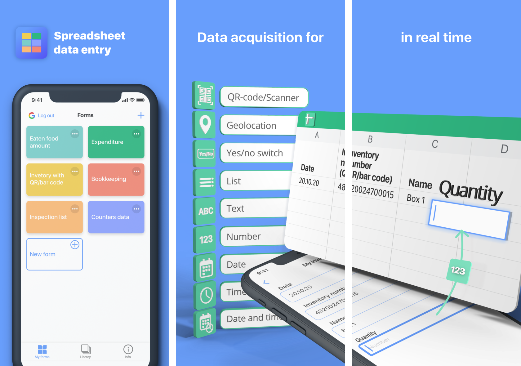 The app allows sending data from your phone to your Google sheet quickly. After that you can make any future manipulation