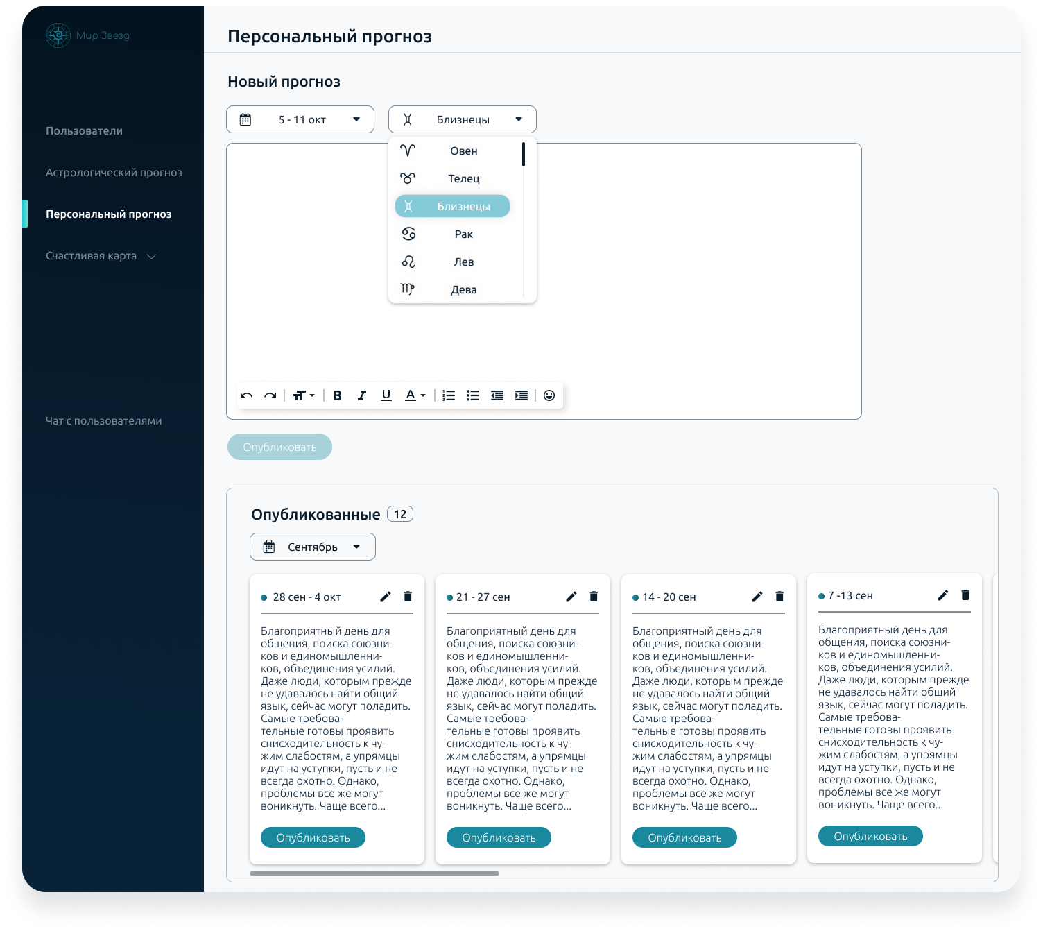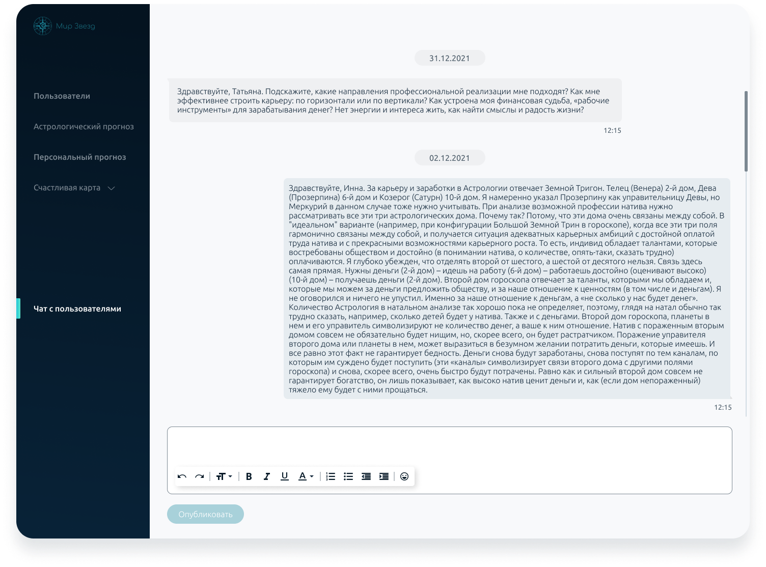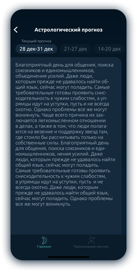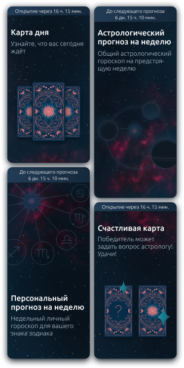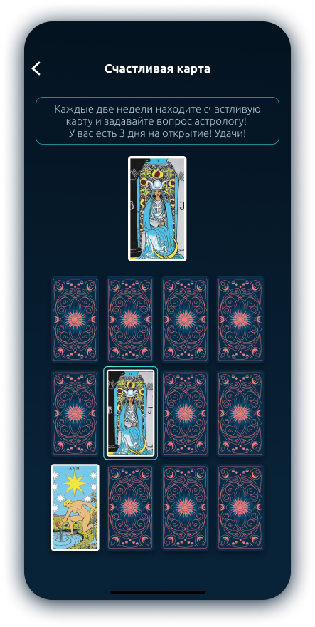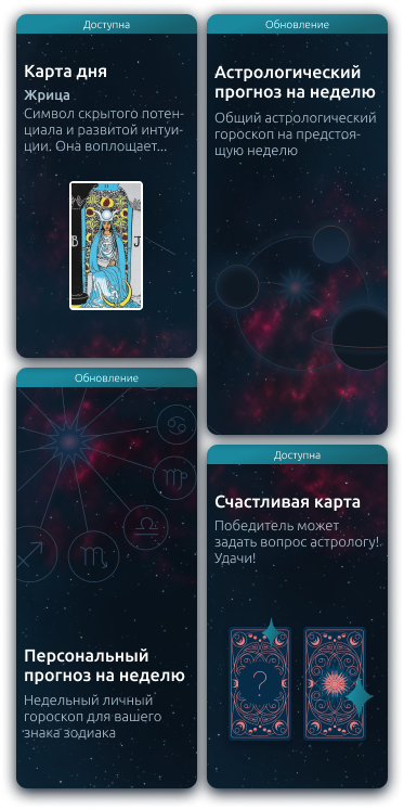 World of Stars is an app that includes a daily tarot reading, an astrological forecast and a premium personal forecast made by a professional astrologer. Also in the application there is an opportunity to guess tarot cards, share the result and discuss personal issues in a chat with an astrologer